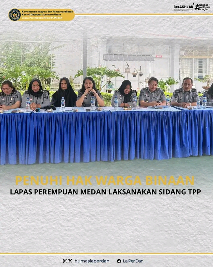 Pelaksanaan sidang TPP ini adalah salah satu upaya Lapas Perempuan Kelas IIA Medan untuk memastikan bahwa proses reintegrasi sosial bagi warga binaan berjalan dengan baik, sesuai dengan persyaratan administratif maupun substantif. Diharapkan, mereka yang lolos evaluasi dapat menjalani masa transisi menuju kehidupan bebas dengan baik dan memberikan pengaruh positif di lingkungan sekitar mereka, Tutupnya.