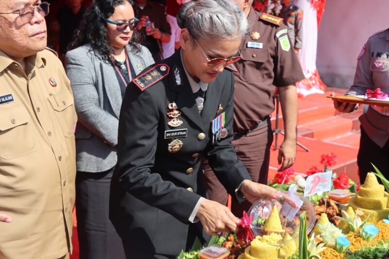 Lalu prosesi pemotongan nasi tumpeng dan kue ulang tahun dilakukan Kapolres Pematangsiantar AKBP Sah Udur T.M. Sitinjak, S.H. S.I.K. M.H. Potongan nasi tumpeng diberikan kepada personil tertua Kompol Surtiyati dan personil termuda Bripda Doni Anugerah Simanjuntak serta kue ulang tahun diberikan kepada Forkopimda Plus dan undangan yang hadir.