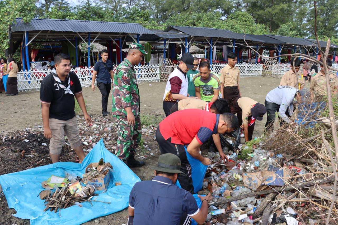 Kegiatan berlangsung dengan tertib dan penuh semangat kebersamaan. Seluruh peserta bahu-membahu membersihkan area pantai, mengumpulkan sampah non-organik, serta menyalurkan bantuan secara langsung kepada warga penerima manfaat, terutama keluarga pra-sejahtera yang telah didata sebelumnya.