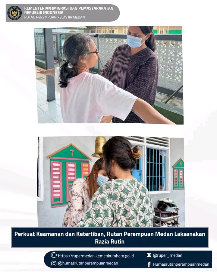 Razia ini rutin dilakukan untuk memastikan tidak ada barang-barang terlarang yang masuk ke dalam Rutan serta mencegah potensi gangguan keamanan di lingkungan hunian warga binaan. Dalam kegiatan ini tidak ditemukan barang terlarang maupun berbahaya serta menimbulkan potensi gangguan keamanan dan ketertiban. Rutan Perempuan Medan berkomitmen untuk terus menggelar kegiatan serupa setiap minggu, sebagai bagian dari upaya menciptakan lingkungan yang aman dan terkendali.