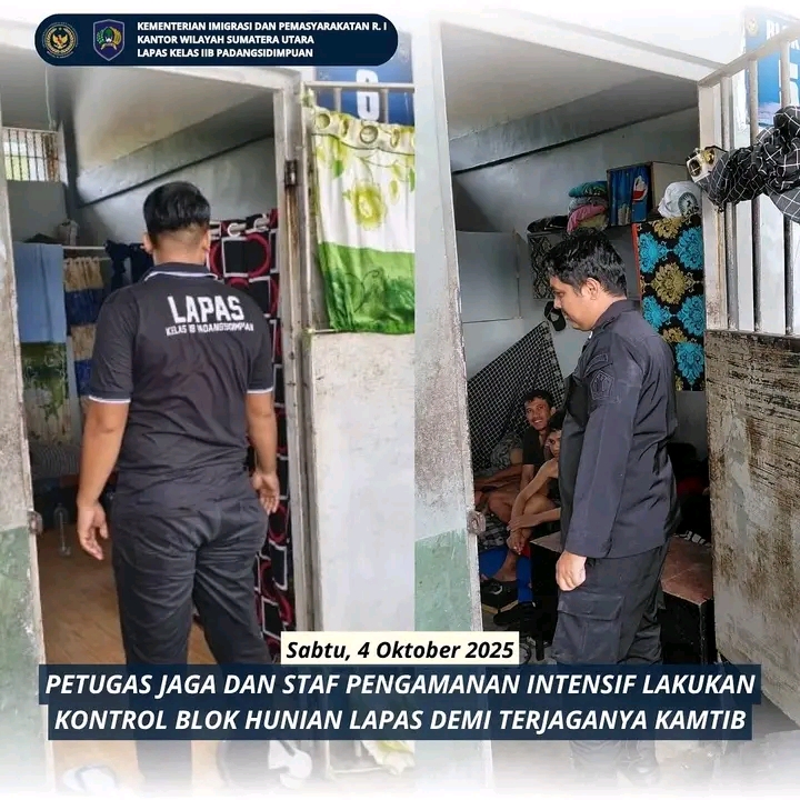 TIMELINES INEWS INVESTIGASI, Padangsidimpuan Dalam upaya menjaga keamanan, ketertiban, dan stabilitas pengelolaan narapidana, petugas jaga dan staf pengamanan di Lembaga Pemasyarakatan (Lapas) secara rutin melakukan kontrol blok hunian. Aktivitas pengawasan ini berjalan siang dan malam, dengan tujuan mendeteksi dini potensi gangguan serta memastikan lingkungan hunian dalam kondisi kondusif dan tertib.