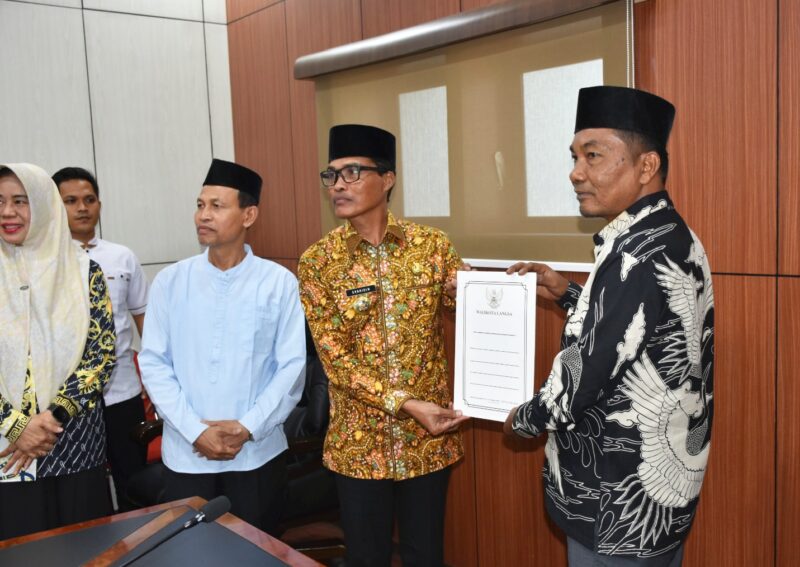 Kota Langsa – Pemerintah Kota (Pemko) Langsa lakukan penetapan dan penyerahan Surat Keputusan Walikota Langsa tentang Pengangkatan Dewan Pengawas periode 2025-2029 dan Direktur periode 2025-2030 Perumda Air Minum (PDAM) Tirta Kemuning Langsa.