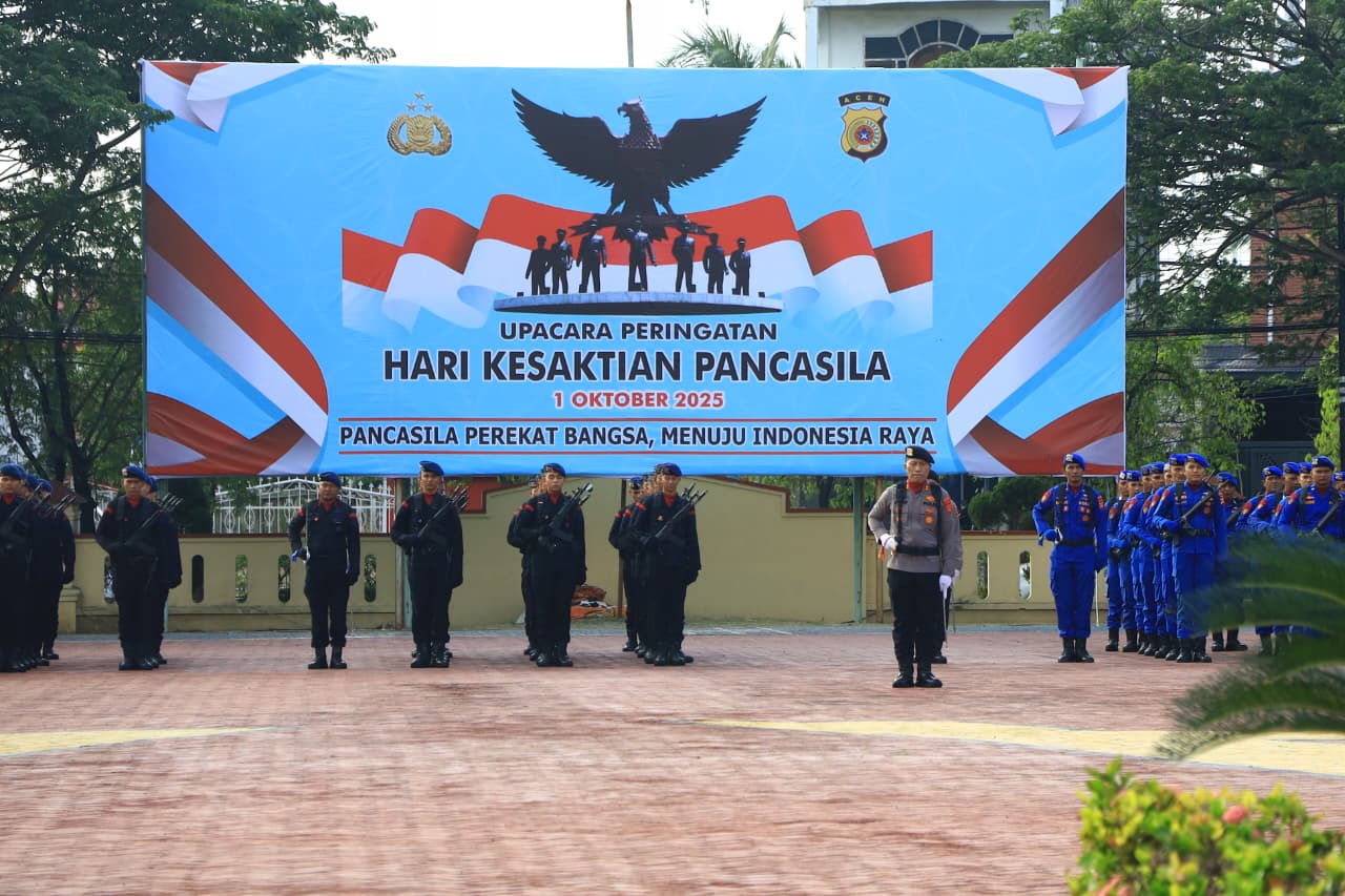 TLLI>>Banda Aceh — Polda Aceh menggelar upacara peringatan Hari Kesaktian Pancasila Tahun 2025 di Lapangan Mapolda Aceh, Rabu, 1 Oktober 2025. Upacara yang berlangsung khidmat itu dipimpin Kapolda Aceh Irjen Pol. Marzuki Ali Basyah, serta diikuti pejabat utama dan personel.