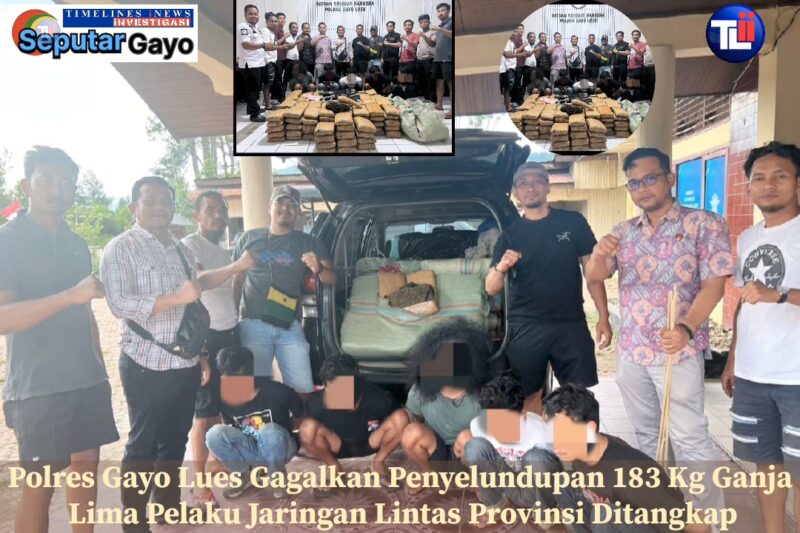 TLii | ACEH |Blangkejeren, 16 Agustus 2025 – Satuan Reserse Narkoba Polres Gayo Lues berhasil menggagalkan penyelundupan narkotika jenis ganja dalam jumlah besar. Dalam operasi yang digelar pada Rabu (13/08/2025), aparat kepolisian mengamankan lima orang tersangka beserta barang bukti ganja seberat 183 kilogram.