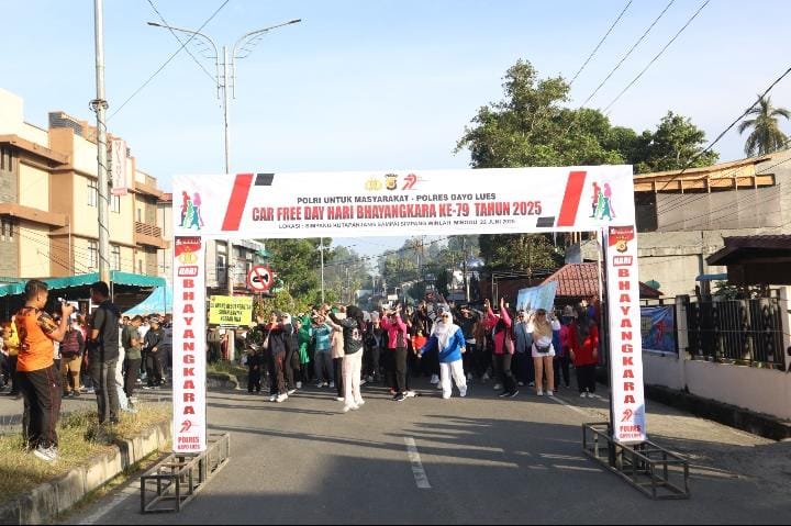 TLii | ACEH – Dalam rangka menyambut Hari Bhayangkara ke-79 yang akan diperingati pada 1 Juli 2025, Polres Gayo Lues menggelar kegiatan Car Free Day (CFD) yang berlangsung meriah dan penuh antusiasme di Jalan Brigjen Pol. Ridwan Karim No. 02, Kecamatan Blangkejeren, Minggu pagi (22/6/2025).