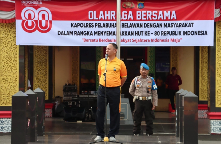 TIMELINES INEWS INVESTIGASI, Belawan, 15 Agustus 2025 Menyambut Hari Ulang Tahun (HUT) Kemerdekaan Republik Indonesia ke-80, Polres Pelabuhan Belawan menggelar kegiatan Olahraga Bersama di Lapangan Apel Polres Pelabuhan Belawan, Jumat (15/8).
