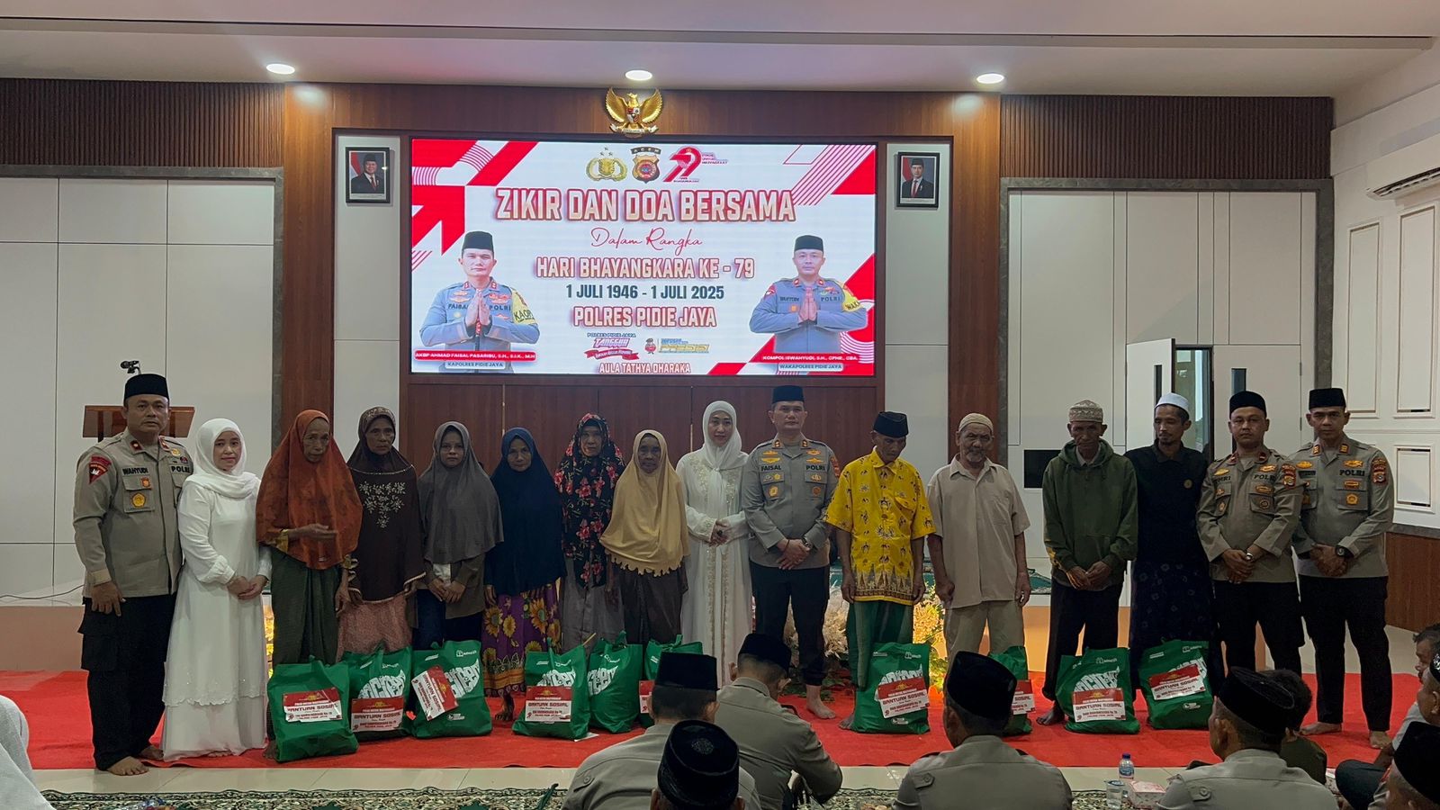 Selain zikir dan doa, Polres Pidie Jaya membagikan 20 paket sembako berupa beras dan telur kepada anak yatim dan lansia. Acara berlangsung khidmat dan diakhiri dengan harapan agar Polri semakin dicintai masyarakat.