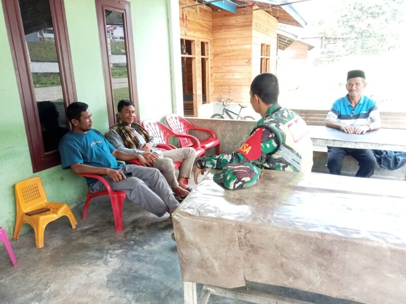 TLii | Aceh – Babinsa Pos Ramil Dabun Gelang Melaksanakan Komsos adalah salah satu media Babinsa untuk mengenal warganya lebih dekat lagi dan sebagai sarana silaturahmi kepada warga binaannya agar warga menjadi lebih dekat dan akrab dengan Babinsa. Selain itu kegiatan Komsos ini bertujuan untuk mencari informasi dan mengetahui perkembangan situasi di wilayah Desa binaan.