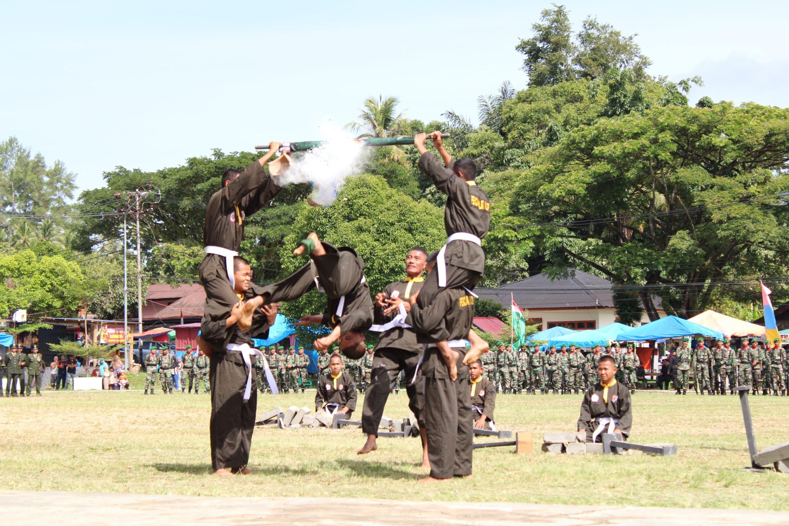 Sebagai penutup kegiatan, Prajurit Yonif TP 855/RD menampilkan demonstrasi Pencak Silat Militer (PSM) yang memukau para tamu undangan dan masyarakat Gayo Lues. Dalam atraksi tersebut, para prajurit menunjukkan keahlian bela diri, ketangkasan, dan koordinasi gerak yang menggambarkan ketepatan, kekuatan, serta kecepatan seorang prajurit di medan tugas. Aksi yang penuh energi dan disiplin ini berhasil menarik perhatian serta mendapat apresiasi dari seluruh penonton yang hadir di lapangan.