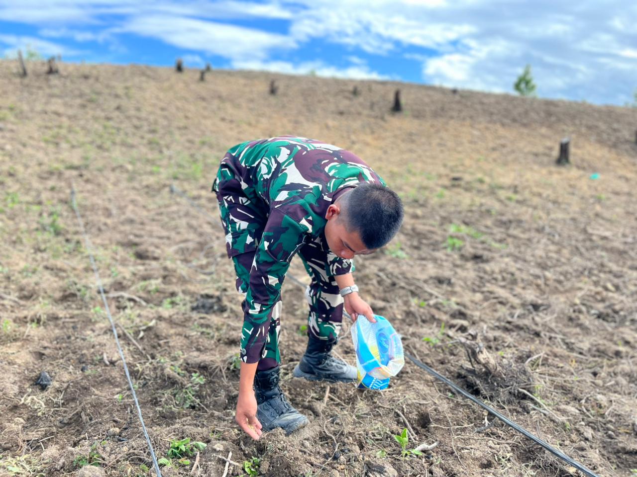 Dalam kesempatan tersebut, Letda Inf Zidan Albarka menyampaikan bahwa kegiatan ini tidak hanya bertujuan untuk mendukung kebutuhan pangan satuan, tetapi juga sebagai bentuk sinergi antara TNI dan masyarakat dalam meningkatkan produktivitas pertanian di daerah. “Melalui kegiatan ini, kami ingin menunjukkan bahwa TNI tidak hanya hadir untuk menjaga keamanan, tetapi juga ikut berperan dalam meningkatkan kesejahteraan masyarakat melalui bidang pertanian,” ujarnya.