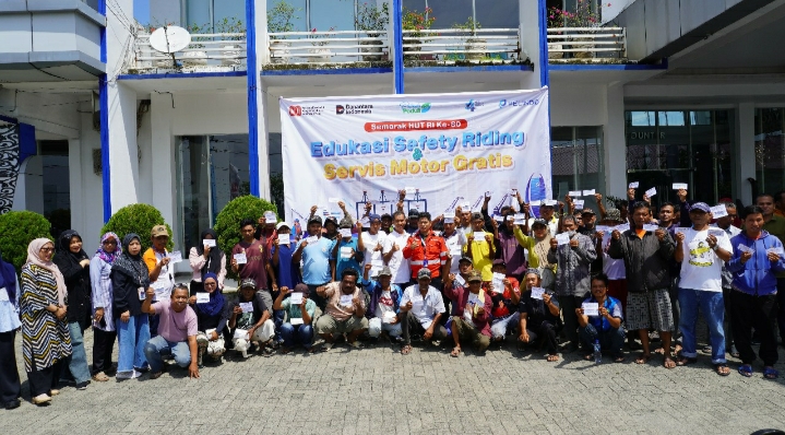 TIMELINES INEWS INVESTIGASI, Belawan, 12 Agustus 2025 Dalam rangka menyemarakkan peringatan Hari Ulang Tahun (HUT) Kemerdekaan Republik Indonesia ke-80, PT Pelabuhan Indonesia (Persero) atau Pelindo menggelar rangkaian kegiatan Tanggung Jawab Sosial dan Lingkungan (TJSL), salah satunya Edukasi Safety Riding dan Service Motor Gratis bagi para pengemudi ojek di sekitar Pelabuhan Belawan.