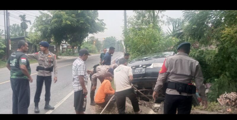 Kota Langsa – Satbrimob Polda Aceh, Senin, 11 Agustus 2025. Personel Brimob dari Kompi 2 Batalyon Pelopor dengan sigap dan cepat menuju lokasi kecelakaan dan langsung membantu mengevakuasi korban kecelakaan tunggal kendaraan pickup jenis Carry yang mengangkut sayur-sayuran, dikendarai oleh Bapak ZL warga Kec. Sungai Raya, Kab. Aceh Timur.
