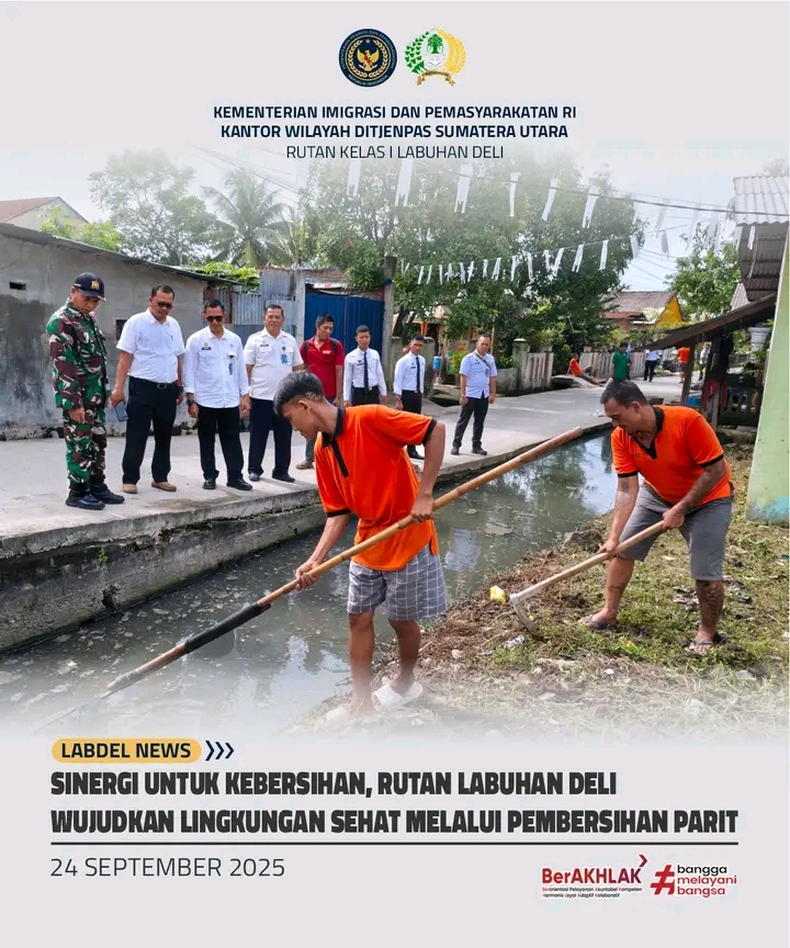 Pembersihan parit ini menjadi bukti nyata sinergi Rutan Kelas I Labuhan Deli bersama masyarakat dalam mewujudkan lingkungan yang sehat, aman, dan nyaman, Terangnya.