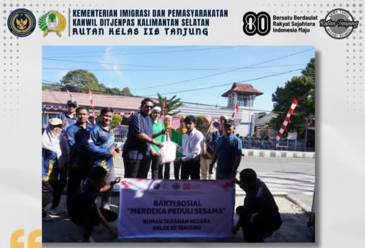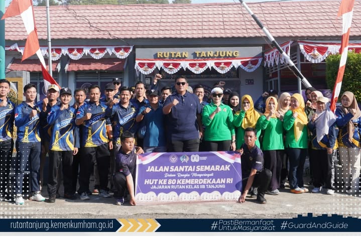 TIMELINES INEWS INVESTIGASI, Tanjung Dalam rangka memeriahkan Hari Ulang Tahun (HUT) Kemerdekaan Republik Indonesia ke-80, Rumah Tahanan Negara (Rutan) Kelas IIB Tanjung menggelar kegiatan jalan santai dan bakti sosial, Jumat (15/8/2025).