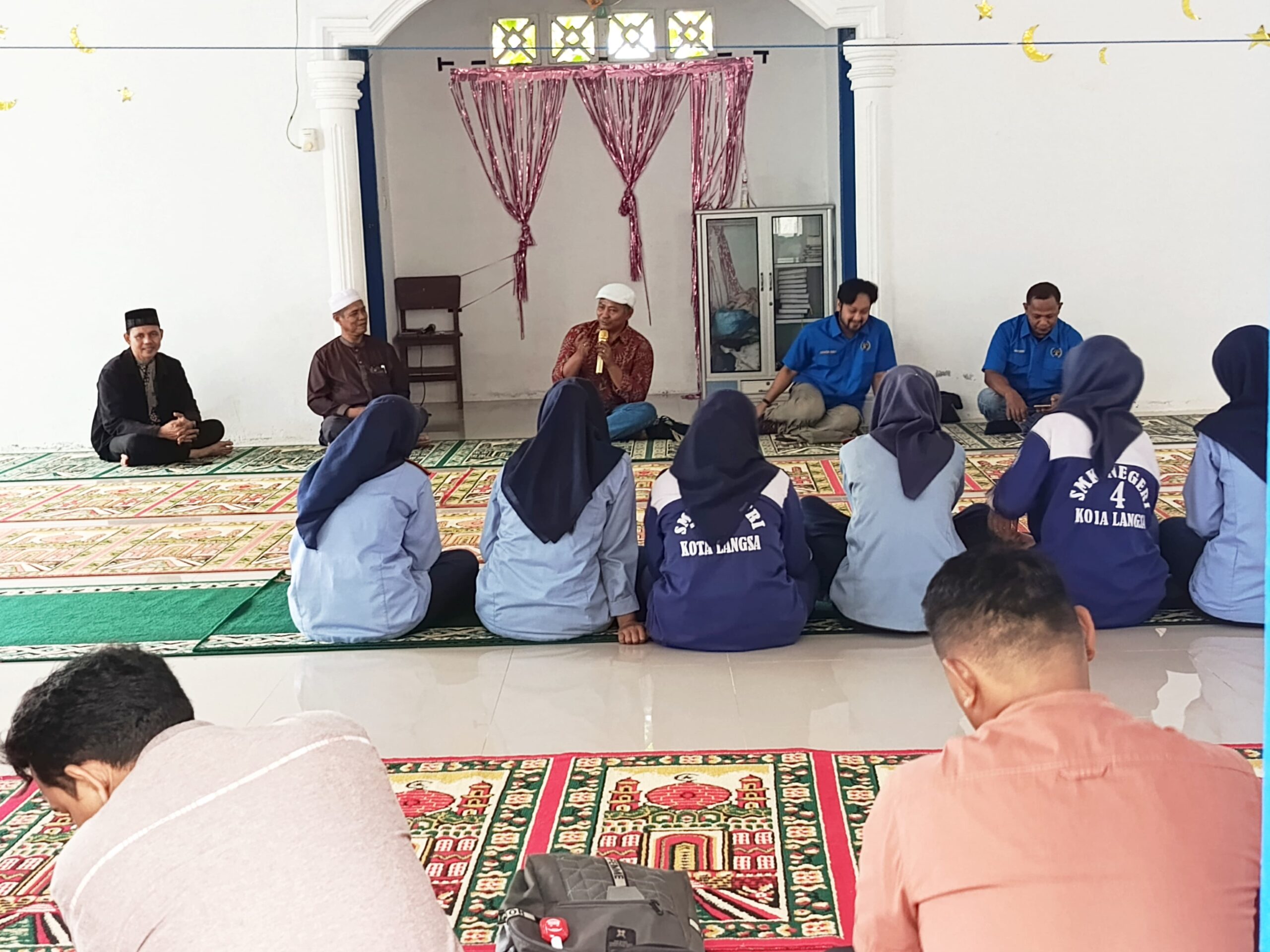 Kehadiran Tim Safari Ramadhan PWI Kota Langsa di sambut langsung oleh Kepala Sekolah SMK N 4 Langsa Rusli, S.Pd bersama Para Guru dan Pelajar di Mushalla setempat.