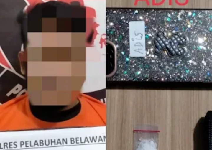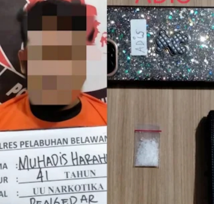 Tersangka berinisial Muhadis (41) ditangkap dengan barang bukti berupa satu plastik klip berisi narkotika jenis shabu, sebuah dompet, satu unit telepon genggam, dan uang tunai sebesar Rp 50.000 yang diduga berasal dari hasil transaksi narkoba.