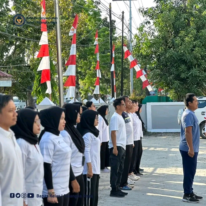 TIMELINES INEWS INVESTIGASI, Palangkaraya Mengawali bulan Agustus yang sarat makna kemerdekaan, Balai Pemasyarakatan (Bapas) Kelas I Palangka Raya menggelar apel pagi rutin yang berlangsung khidmat di halaman kantor, Jumat (01/08/2025). Apel ini dipimpin langsung oleh Kepala Bapas Palangka Raya, Theo Adrianus, dan diikuti oleh seluruh jajaran pegawai.