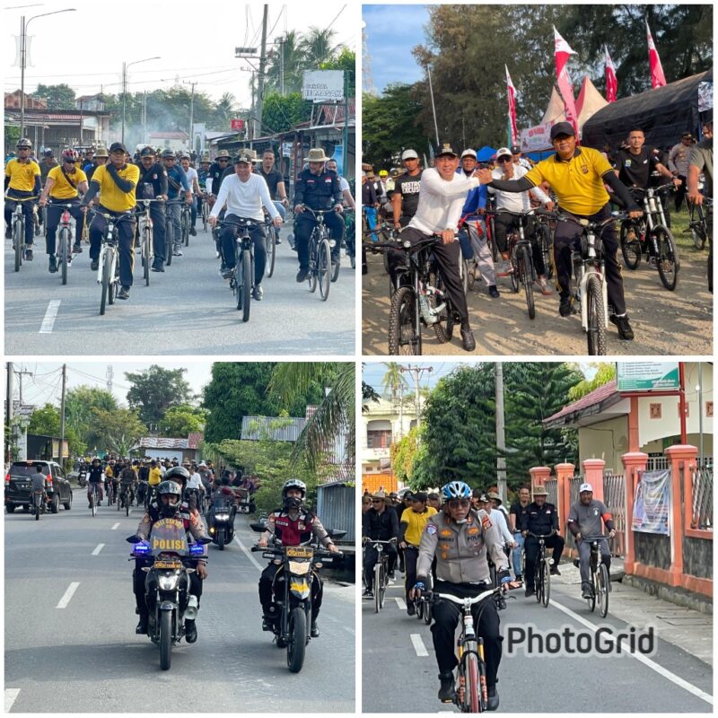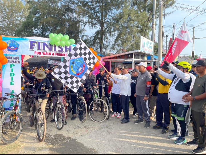 Timelinesinews.com.PIDIE JAYA– Pemerintah Kabupaten Pidie Jaya bersama jajaran Kepolisian menunjukkan kekompakan dan kedekatan dengan masyarakat dalam memeriahkan Hari Ulang Tahun (HUT) ke-18 Kabupaten Pidie Jaya. Bupati H. Sibral Malasyi, M.A., S.Sos., M.E., didampingi Wakil Bupati Hasan Basri, S.T., M.M., dan Wakapolres Kompol Iswahyudi, S.H., CPHR., CBA., turut ambil bagian dalam kegiatan sepeda santai yang berlangsung meriah pada Minggu pagi, 15 Juni 2025.