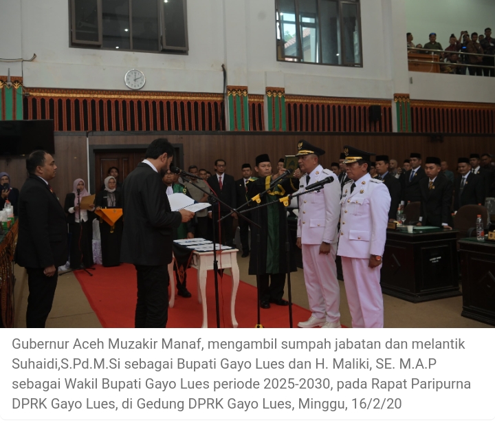 Pelantikan Suhaidi dan Maliki menjadi momen penting dalam perjalanan politik dan pembangunan Gayo Lues. Kehadiran berbagai tokoh penting dalam acara ini menunjukkan bahwa daerah ini mendapat perhatian serius dari berbagai pihak untuk memajukan kesejahteraan masyarakatnya. Semoga dengan komitmen yang kuat, pemerintahan baru ini dapat membawa Gayo Lues ke arah yang lebih baik dan sejahtera. (Red)