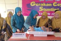 Ketua dan Wakil Ketua TP PKK Kota Langsa menimbang berat badan balita pada Gerakan Cegah Stunting di Gampong Sukarejo, (Foto : Humas Diskominfo Kota…