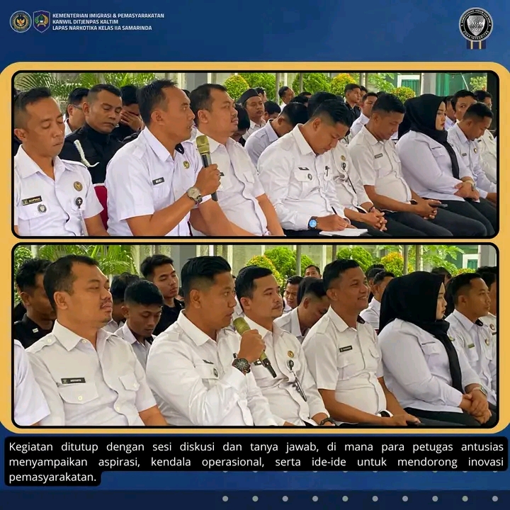 Kegiatan ditutup dengan sesi diskusi dan tanya jawab, di mana para petugas antusias menyampaikan aspirasi, kendala operasional, serta ide-ide untuk mendorong inovasi pemasyarakatan.