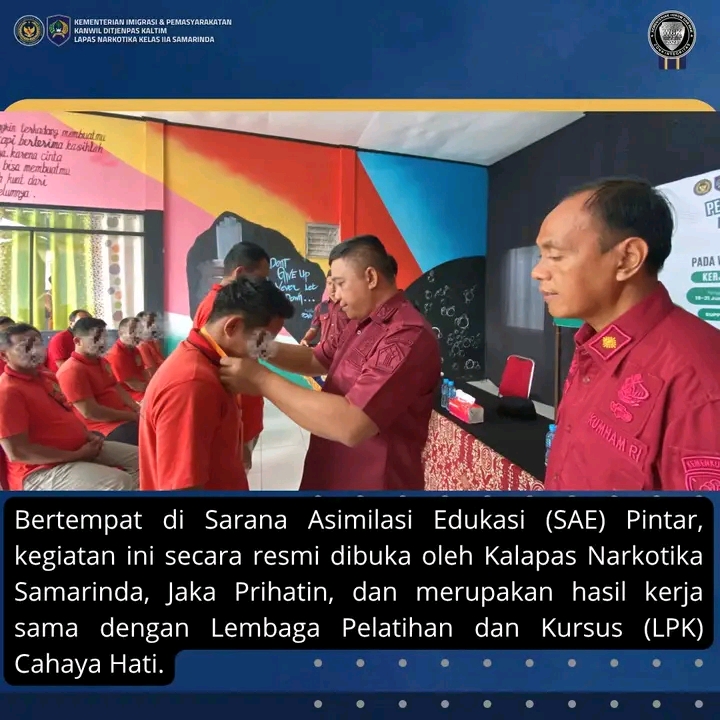 Bertempat di Sarana Asimilasi Edukasi (SAE) Pintar, kegiatan ini secara resmi dibuka oleh Kalapas Narkotika Samarinda, Jaka Prihatin, dan merupakan hasil kerja sama dengan Lembaga Pelatihan dan Kursus (LPK) Cahaya Hati.