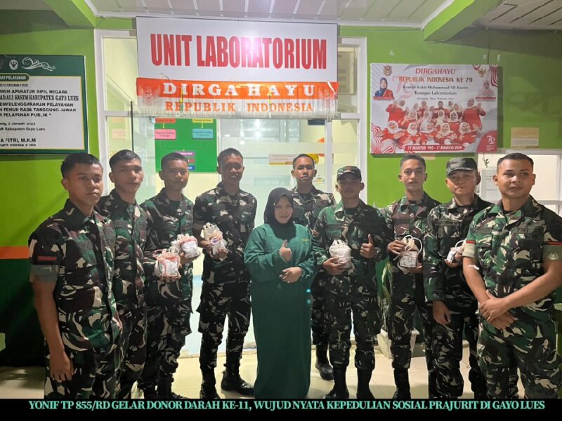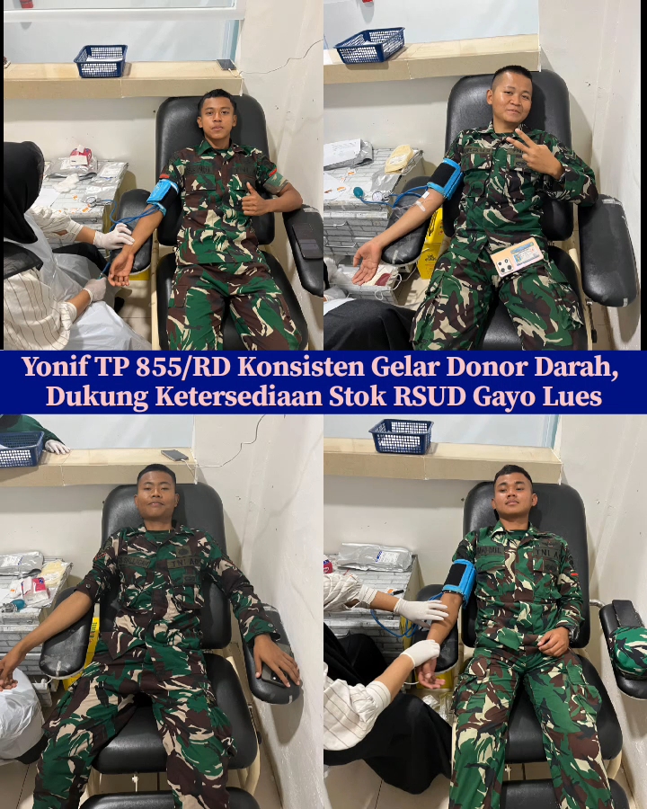 Tercatat, sejak Juli 2025 hingga September 2025, Yonif TP 855/RD telah 11 kali menggelar kegiatan donor darah dengan melibatkan 80 prajurit yang berpartisipasi. Hal ini menunjukkan konsistensi prajurit dalam mendukung ketersediaan stok darah di RSUD Gayo Lues serta memperkuat sinergi bersama instansi kesehatan daerah.