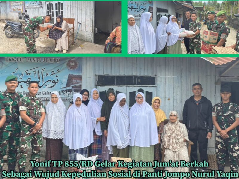 TLii | ACEH | Gayo Lues – Dalam rangka mempererat tali silaturahmi dan menunjukkan kepedulian terhadap sesama, Prajurit Yonif TP 855/RD melaksanakan kegiatan sosial Jum’at Berkah di Panti Jompo Nurul Yaqin, yang berlokasi di Kampung Rerebe Kecamatab Dabun Gelang. Jum’at 15/08/2025.